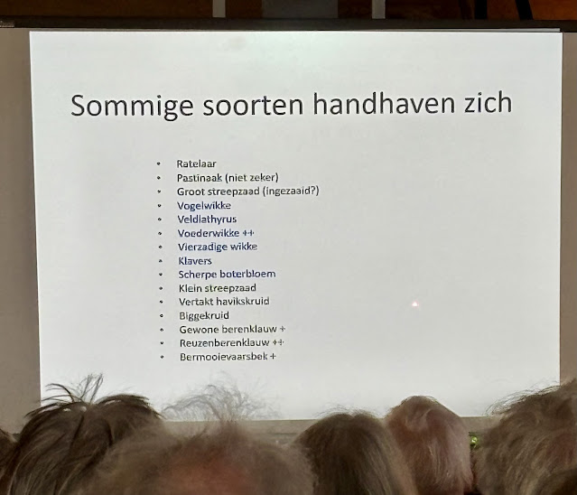 Het was een interessante lezing, maar echt vrolijk word ik er niet van. Er is in die dertig jaar veel verdwenen, planten maar ook soorten vlinders. Voor mij aanleiding om op zoek te gaan naar nog meer inheemse planten om in mijn tuin te zetten.